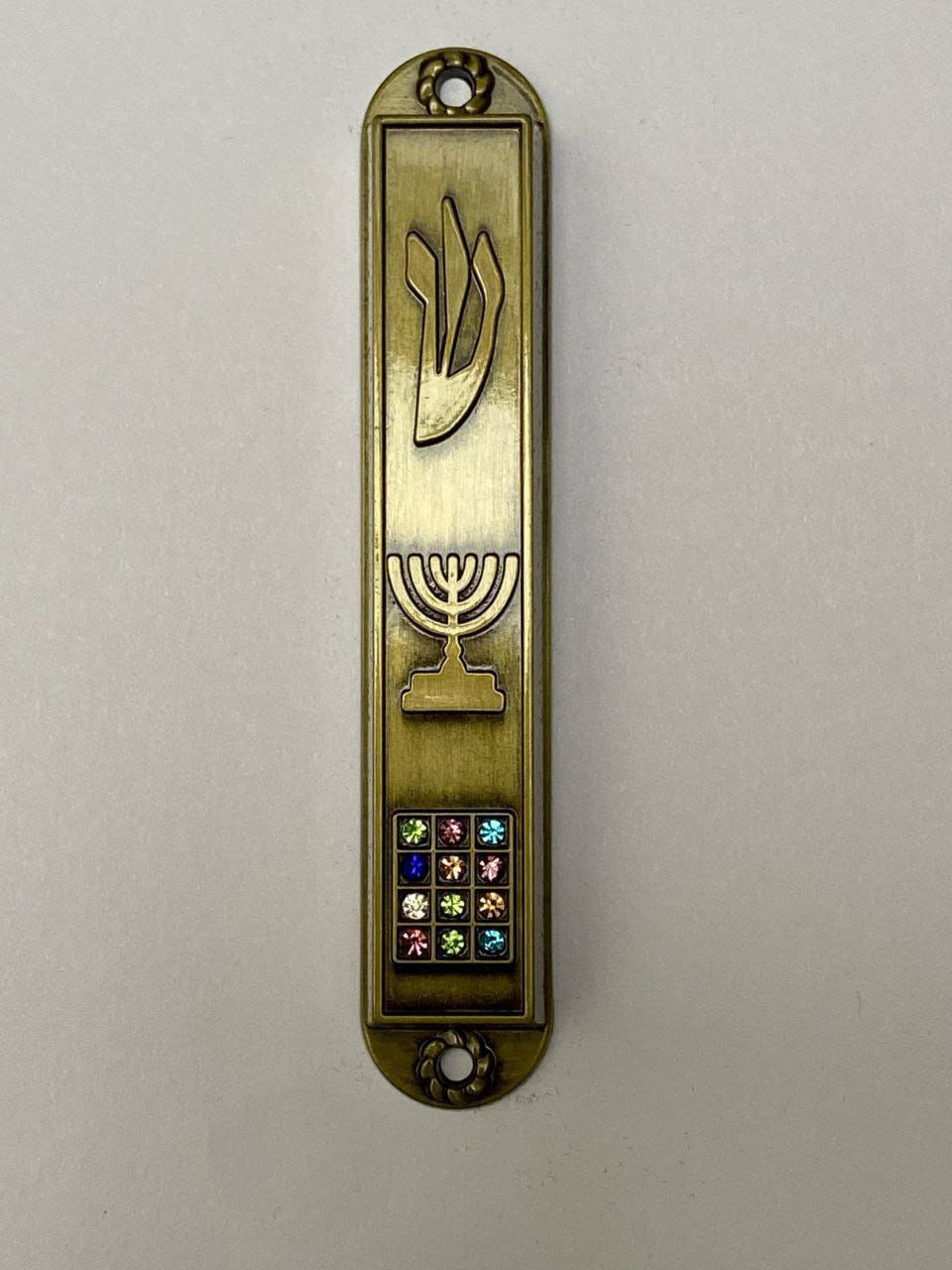 Mezuzá Menorah Aharon incluye copia del rollo (no kosher) 8.7 cmts